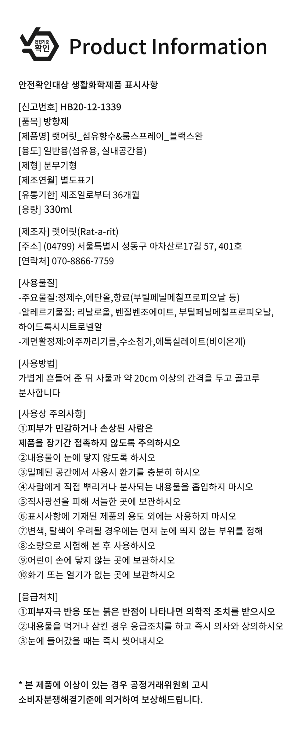 - 상품 수령 후 7일 이내에 랫어릿으로 연락을 주셔야 합니다.