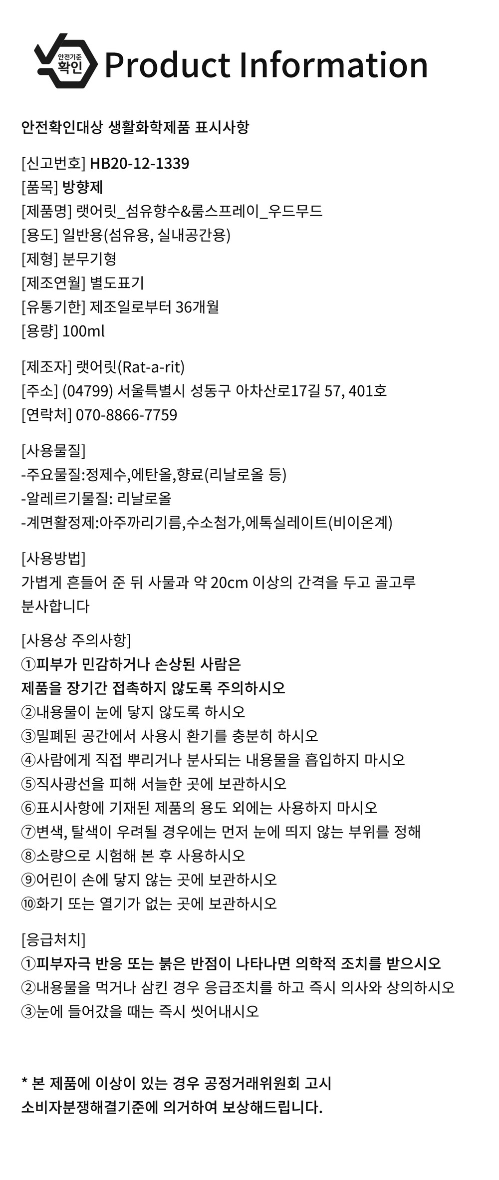 - 상품 수령 후 7일 이내에 랫어릿으로 연락을 주셔야 합니다.